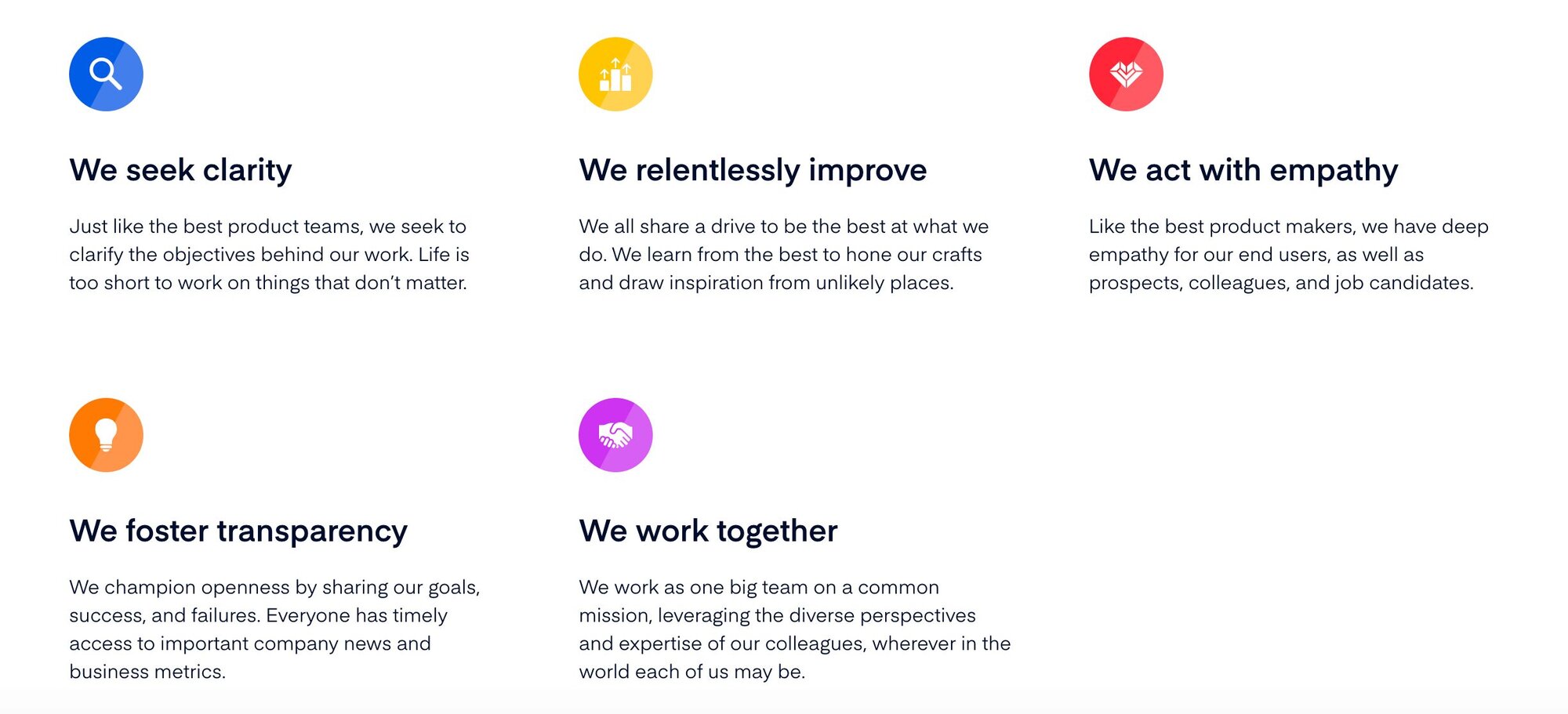 The founders then provided their input and helped with turning the values into actions. Finally, we settled on the refreshed set of values below:
